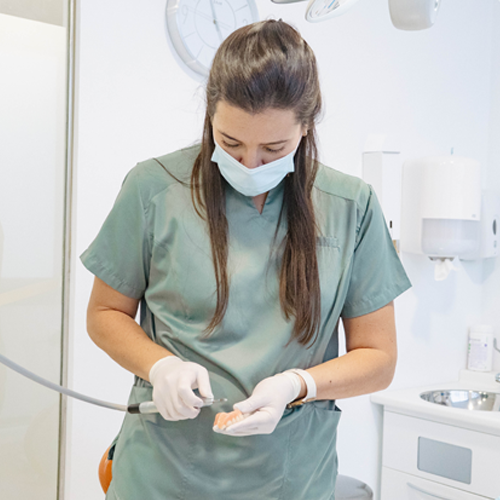 En el caso de prótesis fijas la higiene se realiza igual que en la dentición natural.